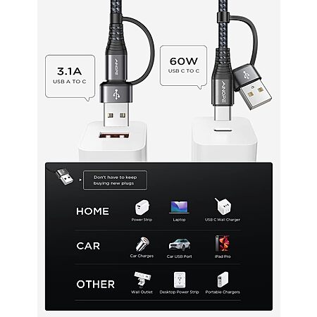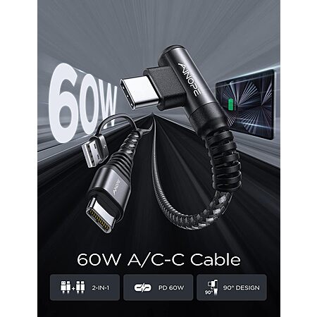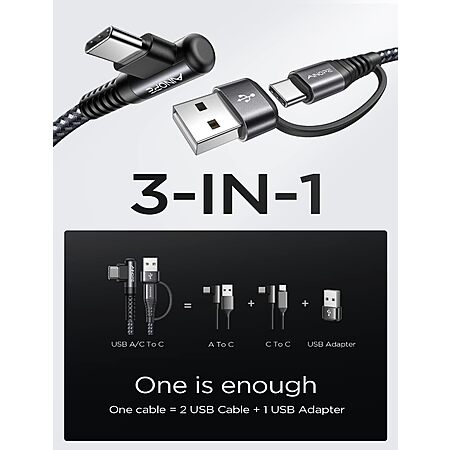 AINOPE US via Amazon [amazon.com] has Prime Members: 2-Pack 6.6' AINOPE 60W Right Angle USB-C Cable w/ USB-A Adapters (2 colors) on sale from $5.48 when you apply the corresponding promo code at checkout. Shipping is free.