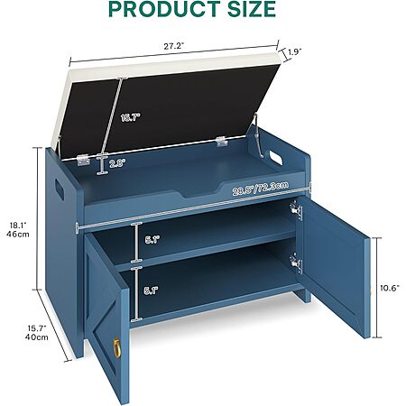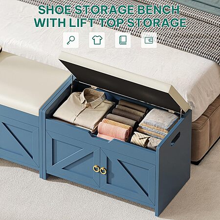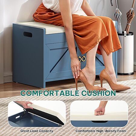 28" Yitahome Shoe Storage Bench w/ Cushioned Lift-Top Seat (Blue) $40 + Free Shipping