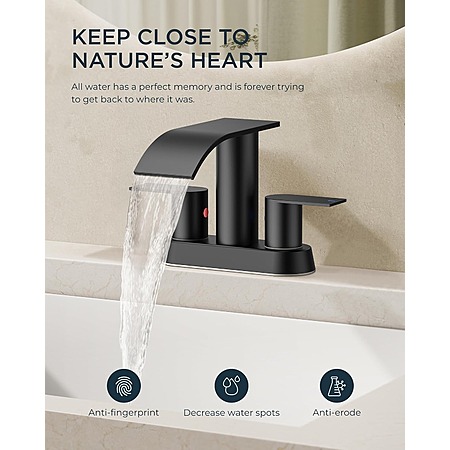 Prime Members: FORIOUS 4" Waterfall Bathroom 2 or 3 Hole Faucet (Matte Black) $32.74 + Free Shipping