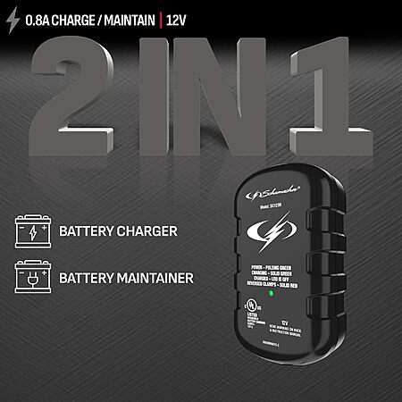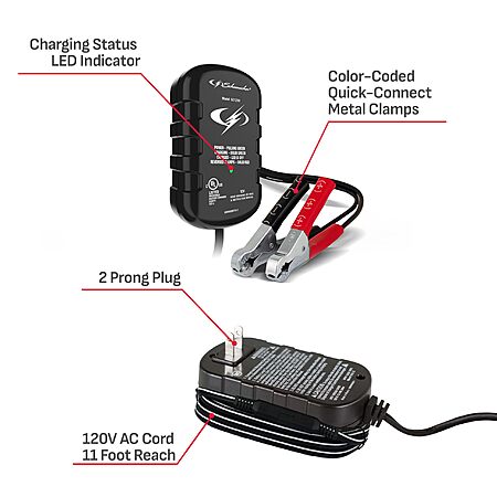 $11.75*:Schumacher Electric 0.8A Car Battery Charger and Maintainer, 2-in-1 Solution, for 12V Power Sport, Automotive, and Marine Batteries, SC1299