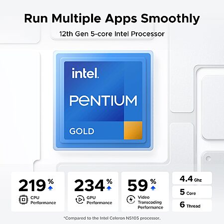 Model: UGREEN NASync DXP4800 Plus 4-Bay Desktop NAS, Intel Pentium Gold 8505 5-Core CPU, 8GB DDR5 RAM, 128G SSD, 1 * 10GbE, 1 * 2.5GbE, 2*M.2 NVMe Slots, 4K HDMI, Network Attached Storage (Diskless)