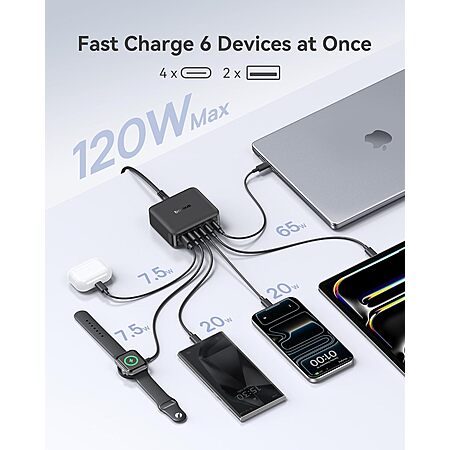 Baseus Brand Store via Amazon[amazon.com] has for Prime Members: Baseus 120W GaN 6-Port Desktop Charging Station (4x USB-C & 2x USB-A) on sale for $29.99 - $3 off when you apply promo code OQ23O4TD at checkout = $26.99. Shipping is free.