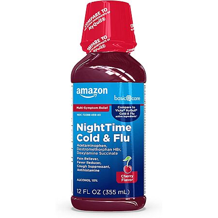 Amazon Basic Care Night Time Cold & Flu Liquid, Cherry, 12 fl oz (Pack of 1)