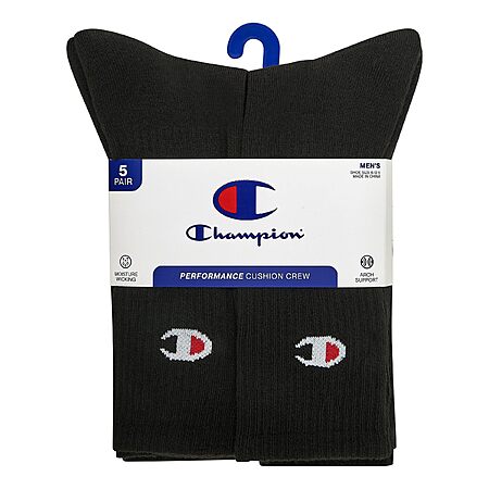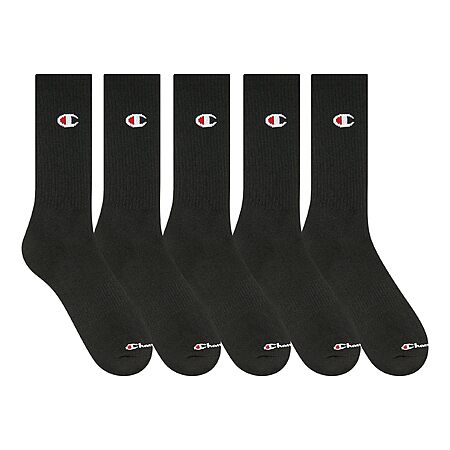 5-Pack Champion Men's Moisture Wicking Athletic Crew Socks w/Cushioning & Arch Support (Black, Size 6-12) $8.06 + Free Shipping w/ Prime or on $35+