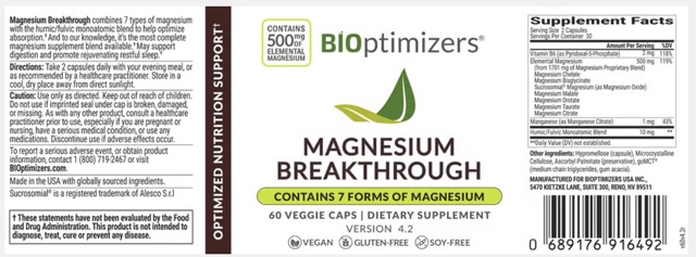 Based on your request, I have dug deep into the "Supplement Facts" for BiOptimizers Magnesium Breakthrough Version 4.2 (the specific version on your bottle) and cross-referenced it with ingredient labels and user discussions.