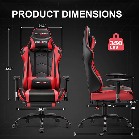 GTRACING Gaming Chair, Ergonomic Office Desk Chair with Lumbar Support, PU Leather, Footrest & Adjustable Headrest, Red $79.99