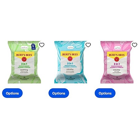 $5.47 + $1.20 Walmart Cash - Burt's Bees Micellar Facial Towelettes, 30 ct. Package (Rose Water, Coconut/Lotus, Fragrance Free)