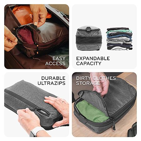 Model: Peak Design Packing Cube, Charcoal, Weatherproof Luggage Cube with Dual Compartment Organization, Expansion and Compression, Zipper Opening, Travel Organizer for Men and Women, Size S