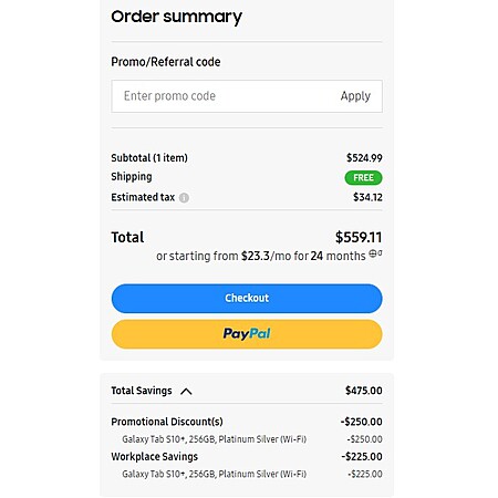 Samsung EPP: Galaxy Tab S10+, 256GB, Platinum Silver (Wi-Fi) $524.99