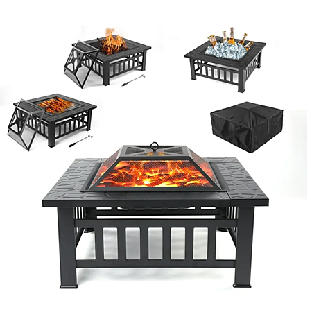 Price Drop - NOW $66 - Fire Pits for Outside, 32" Wood Burning Fire Pit Tables with Screen Lid, Poker, BBQ Net, Ice Tray, Food Clip and Cover