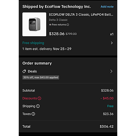 I don't have a link, but, you'll need the TikTok App and navigate to the shop portion of the app, then find EcoFlow's store then find the Delta 3 Classic and hope it's $328.06 with a $45 coupon available. Good luck!
