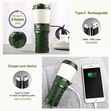 Echo this comment. The lantern is an absolute unit about the size of an energy drink. Runtime is incredibly long and the warm options are great. Only downside is weight if you plan to hang in a tent but it just makes it droop a tiny bit - not much.