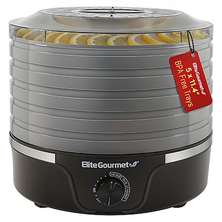 Amazon[amazon.com] has 350WElite Gourmet Food Dehydrator w/ 5 BPA-Free 11.4" Trays & Adjustable Temperature Controlsfor Jerky, Herbs, Fruit, Veggies, Dried Snacks (Black/Gray) on sale for $32.09. Shipping is free w/ Prime or on orders $35+.