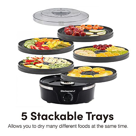 Model: Elite Gourmet EFD319BNG Food Dehydrator, 5 BPA-Free 11.4" Trays Adjustable Temperature Controls, Jerky, Herbs, Fruit, Veggies, Dried Snacks, Black and Grey, 5 Trays