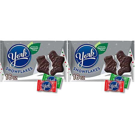 YORK Dark Chocolate Peppermint Patties Snowflakes, Christmas Candy Bag, 16 oz (Pack of 2)~$7.10 @ Amazon