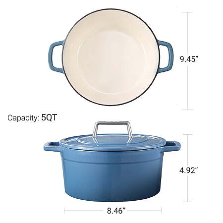 | Product Description: | The Carote 5 Quart Enameled Cast Iron Dutch Oven is perfect for bringing family and friends together at mealtime. Its versatile enameled cast iron construction allows for a variety of cooking methods, including broiling, braising, baking, and roasting in the oven at temperatures up to 400 degrees Fahrenheit. You can also sauté, fry, or simmer on any stovetop with ease. Additionally, this Dutch oven is ideal for marinating and refrigerating your favorite dishes. Designed to deliver both performance and aesthetics, Carote enameled cast iron cookware is crafted to last for generations, ensuring that cherished memories are created at every meal. The 5QT Dutch Oven:All-in-One elegance for the modern kitchen. Superior Heat Retention & Distribution: Made from heavy-duty cast iron, it ensures even heat for perfectly cooked meals every time. Versatile for All Cooking Styles: The large heating bottom promotes fast and uniform heat distribution, locking in moisture and nutrients for dishes Oven & Stovetop Safe: Compatible with gas, electric, induction, and oven use, offering unmatched versatility. Moisture-locking Lid: The tight-fitting lid helps retain moisture and flavor, making it perfect for slow-cooked dishes and stews. Easy to Clean: Non-reactive enamel interior prevents sticking and is dishwasher-safe for hassle-free cleanup |