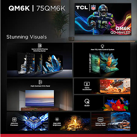 TCL 75" Class QM6K Series 4K UHD HDR QD Mini LED Smart TV with Google TV (2025) for $699.99