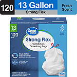 Great Value Strong Flex 13-Gallon Drawstring Tall Kitchen Trash Bags, Fresh Scent, 120 Bags $13.55 Walmart (4.7/5 star rated)