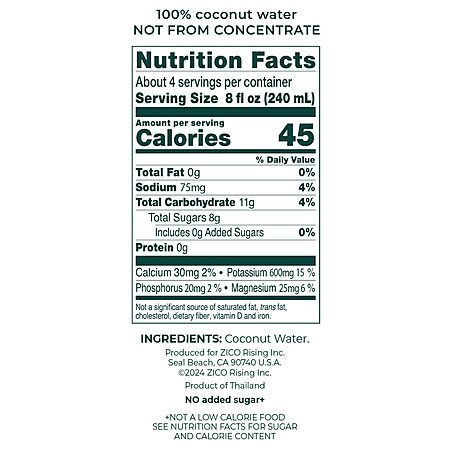 Zico 100% Coconut Water, No added Sugar, 33.8 Fl Oz (Pack of 4) at Amazon $11.65