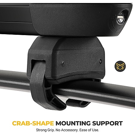 - Crab Mounting System: Fits most aero, oval, and square bars; strong grip with rubber padding.