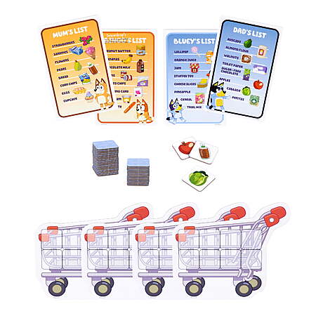 | Product Description: | Join Bluey, Bingo, Bandit and Chilli on a fun-filled supermarket adventure in the Bluey Shopping List Game! From sweet lollipops and crunchy corn chips to fragrant flowers and jars of peanut butter, it’s a race to see who can fill their trolley first—no time to dilly-dally! Perfect for kids aged 3 and up, this exciting memory and matching game helps build key skills like turn-taking, matching, and memory, all while delivering loads of laughter and fun. With bright, sturdy pieces and everyone’s favorite Bluey characters, it’s the ultimate game for little shoppers, big imaginations, and devoted Bluey fans. Whether it’s for family fun, preschool play, or a playful gift, the Bluey Shopping List Game is sure to delight every time you open the box! Ideal for 2-4 players. Race to collect your groceries in this fun memory game! Fun Memory & Matching Game: Encourages memory, matching skills, and turn-taking for kids Play With The Heeler Family: Join Bluey, Bingo, Bandit and Chilli in a fun supermarket adventure! Sturdy & Durable: Features bright, durable pieces an everyone’s favorite Bluey characters For 2-4 Players, Aged 3+: Perfect for family fun, preschool play, and fans of Bluey! Bluey is a lovable Blue Heeler who turns everyday family life into endless, playful adventures. Bring the fun and imaginative play of Bluey and her family home with these adorable Bluey games! |