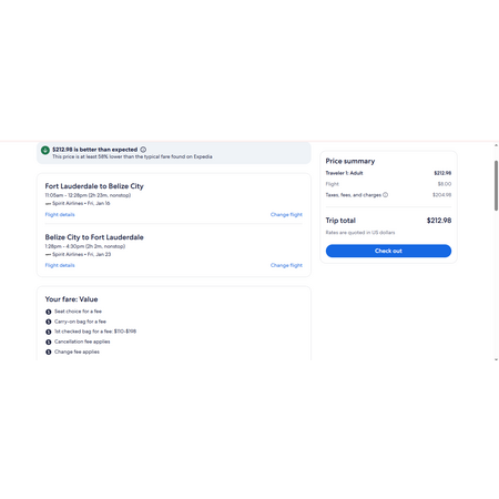Spirit Airlines make its official debut in the Belize market with nonstop service from Fort Lauderdale-Hollywood International Airport (FLL) to Belize City (BZE). Introductory nonstop, round trip airfares are $213 when you use the dates below. On Spirit Airlines, your low-cost airfare will take you and your personal item from point A to point B. There is no seat selection, no carry-on and no change.