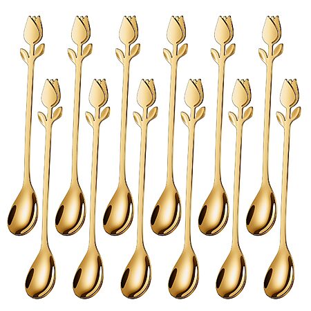 12-Piece SGvrPvz 6" Stainless Steel Mini Coffee Spoons Set (Gold Tulip/Rose) on sale for $9.48 - 50% off when you enter the coupon code