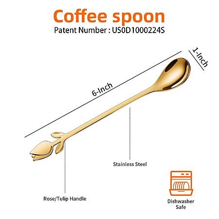 - Elevate Your Coffee Experience: The SGVRPVZ Tulip/Rose Handle Mini Coffee Spoons Set is the perfect companion for your espresso and tea rituals. Crafted from durable stainless steel and adorned with an elegant gold finish, these 6" spoons are ideal for mixing your favorite small servings of dessert or demitasse coffee. Elevate your daily coffee experience with a touch of luxury