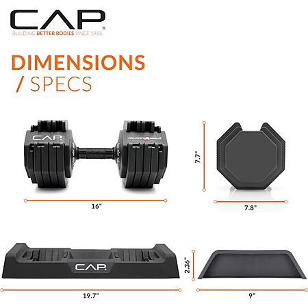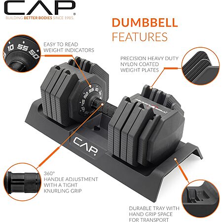 Amazon [amazon.com] has 55-Lbs Pair CAP Barbell ADJUSTABELL Adjustable Dumbbell Weights (Black Handle) on sale for $239.99 - 20% off with promo code BFCM20 = $191.99. Shipping is free.