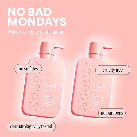 Amazon[amazon.com] has 2-Pack 12-Ounce Monday Volume Shampoo + Conditioner Set (For Thin, Fine, and Oily Hair) for $10.49 - 5% Off when you checkout via Subscribe & Save = $9.97. Shipping is free w/ Prime or on $35+.
