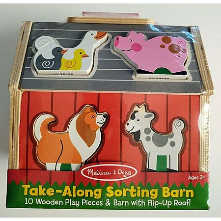 10 pc. Melissa & Doug Wooden Take-Along Sorting Barn Toy, Flip-Up Roof, Handle $12.24 +Free Shipping w/ Prime or on $35+