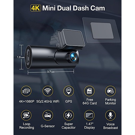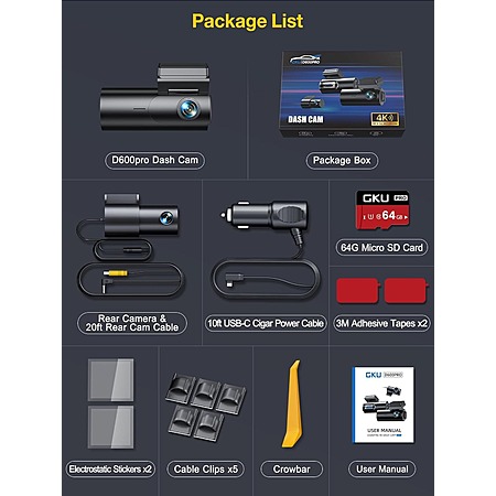 GKU D600 4K/2.5K WiFi Dash Cam $44.09 + Free Shipping