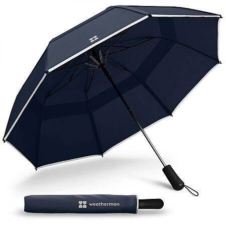 Weatherman Premium Collapsible Travel Umbrella - Windproof, Compact, Easy Auto Open - Resists Up to 55 MPH Winds - Perfect for Rain, Wind, Backpack, Car - Folding Umbrella $59.2