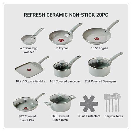 20-Piece T-Fal Refresh Nonstick Ceramic Cookware Set (Moon Grey or Mint Green) $89.99 + Free Shipping