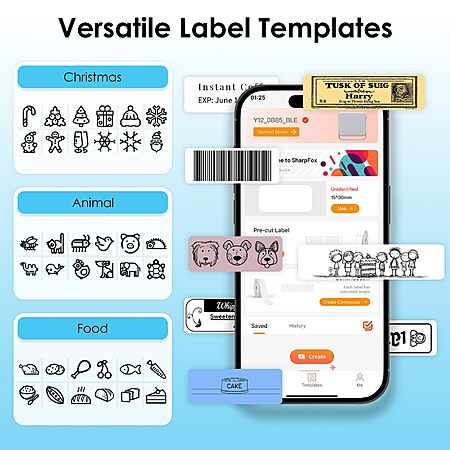 • Easy-to-use App & DIY Labels: KNAON Thermal Shipping Label Printer offers a vast selection of pre-designed templates, including 3,000+ templates, 5,000+ icons, and 100+ fonts available in the app. Designed for both professional and personal use, it supports various thermal paper sizes, ensuring effortless customization for all your labeling needs. Ideal for printing DIY barcode labels, name tags, price tags, and various small thermal labels. ( Note: Please be aware that this Bluetooth label make