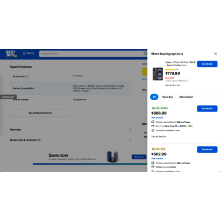 Apple - iPhone 16 Plus 128GB - Apple Intelligence (Unlocked) Open Box Excellent $686.99