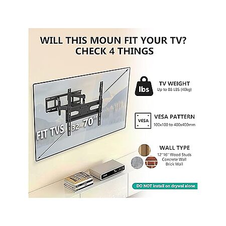 Wali 32"-70" Full Motion TV Wall Mount $19.99 + Free Shipping w/ Prime