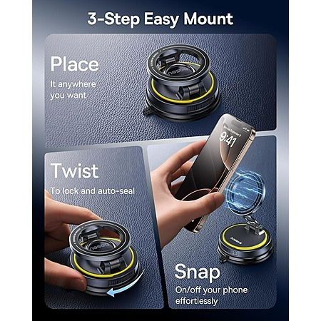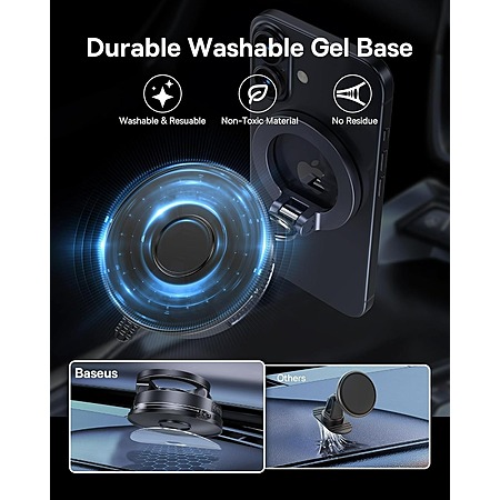 Model: Baseus for Magsafe Car Mount, Vacuum 119LBS Magnetic Suction Cup Phone Holder for Car, 720° Adjustable Foldable Cell Phone Holder with Reusable Washable Gel for Car & for iPhone 17 16 15 14 13 Pro Max