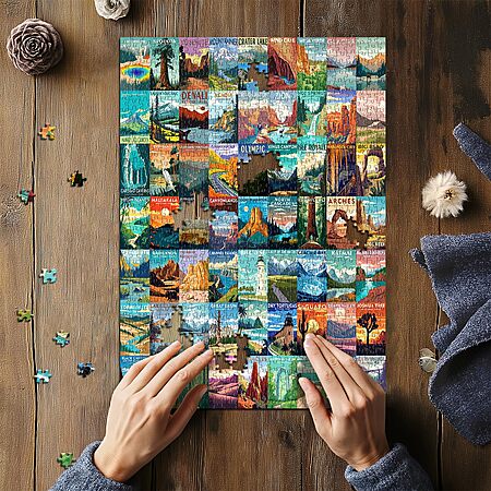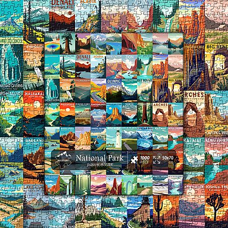 $12.23*:National Parks Puzzle for Adults 1000 Pieces, Travel Poster Landscape Puzzle Including Zion Yellowstone Yosemite, Nature Jigsaw Puzzles Scenery Mountain Scene