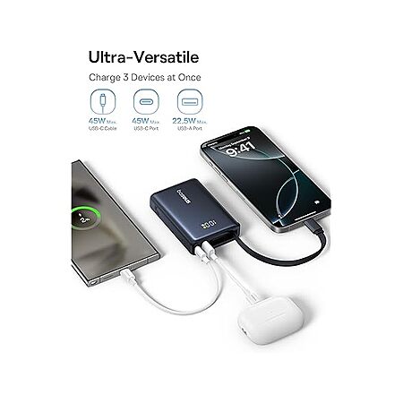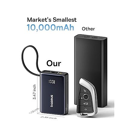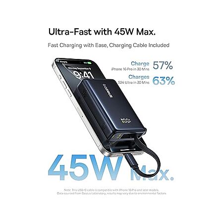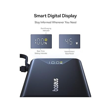 $17.99*:Baseus Power Bank, Picogo 10000mAh 45W 3-Output Portable Charger with Built-in USB-C Cable(Black/White)