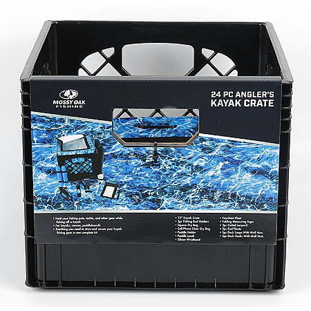 | Product Description: | The Mossy Oak Kayak Fishing Accessories Crate has all you need for your next float trip. This angler kit includes a 13" kayak crate, 2 fishing rod holders, a square dry bag, clear cell phone dry bag, paddle holder, paddle leash, silica gel wristband, keychain float, folding measuring tape, 2 coiled lanyards, 2-rod floats, 5 deck loops with well nuts, and 5 deck hooks with well nuts. This milk crate was created to fit all of your essentials on your kayak, canoe, or paddleboard while keeping them dry and protected. The square dry bag fits perfectly inside the crate and is also removable. This kayak crate also features Mossy Oak's Nautical pattern along with blue accents. This crate is perfect for your next water trip. Utility Boxes, 1 Each. Mossy Oak 24 Piece Kayak Storage Crate with Dry Bag, Fishing Accessories Kit and Rod Holder Milk Crate Blue This crate holds your fishing poles, tackle, and other essential gear A square dry bag keeps your gear dry and protected This kayak crate includes all of your essentials and keeps them dry Includes a 13" kayak crate, 2 fishing rod holders, a square dry bag, clear cell phone dry bag, paddle holder, paddle leash, silica gel wristband, keychain float, folding measuring tape, 2 coiled lanyards, 2-rod floats, 5 deck loops with well nuts, and 5 deck hooks with well nuts. Milk crate Utility Boxes 1 Each |