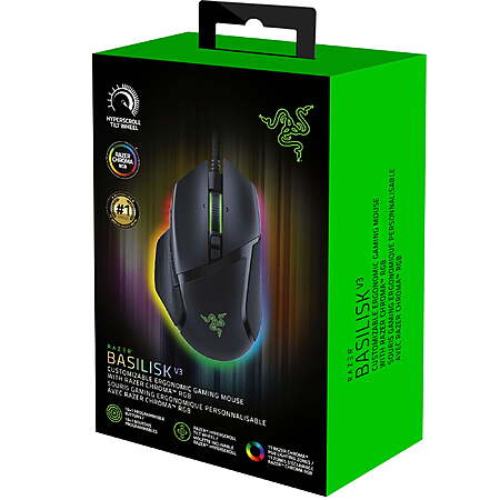 | Product Description: | Razer Basilisk V3 Customizable Wired Ergonomic PC Gaming Mouse with Razer Chroma RGB FULL SPECTRUM CUSTOMIZABILITY Play it your way like never before. Create, control, and champion your playstyle with the new Razer Basilisk V3—the quintessential ergonomic gaming mouse for customized performance. With 10+1 programmable buttons, a dual-mode tilt scroll wheel, and a heavy dose of Razer Chroma RGB, it's time to light up the competition your way. Loaded with high profile performance, seamlessly switch between any of your custom button profiles via a programmable button underneath the mouse for optimized performance with every game and task. The tactile cycling mode is for high-precision and distinct notched scrolling, ideal for cycling through weapons or skills. The smart-reel mode enabled via Razer Synapse; the scroll wheel automatically shifts from tactile to free-spin mode when you scroll faster. Free spin scrolling mode is designed for smooth, highspeed scrolling perfect for covering content quickly or emulating repeated game commands. By turning on virtual acceleration through Razer Synapse, you'll be able to increase the mouse's scroll speed the faster you scroll, allowing you to navigate through lengthy documents and articles at an even quicker rate. 10+1 Programmable Buttons For Limitless Configurations: Assign all your macros and secondary functions across 11 programmable buttons—including its acclaimed multi-function trigger—to execute essential actions like push-to-talk, ping, and more. Razer HyperScroll Tilt Wheel for Smooth, Free-Spin Scrolling or Tactile Cycling: Speed through content with a scroll wheel that free-spins until its stopped, or switch to tactile mode for more precision and satisfying feedback that’s ideal for cycling through weapons or skills. 11 Razer Chroma RGB Lighting Zones for Customizable Lighting Effects and Full Underglow: Bask in the Razer Basilisk V3’s glory as you customize each zone from over 16.8 million colors and countless lighting effects, all while it reacts dynamically with over 150 Chroma-integrated games. Iconic Ergonomic Design with Thumb Rest for Effortless Use and Long-lasting Comfort: Favored by millions worldwide, the mouse’s signature form factor perfectly supports your hand while its buttons are optimally positioned for quick and easy access. Razer Optical Mouse Switches Gen-2 For Unrivalled Speed and Reliability: With zero unintended mis clicks you can count on these switches to provide crisp, responsive execution at a blistering 0.2ms actuation speed for up to 70 million clicks. Razer Focus+ 26K DPI Optical Sensor for Unrivalled Precision and Responsiveness: Our best-in-class sensor with intelligent functions such as asymmetric cut-off, flawlessly tracks your movement with zero smoothing, allowing for crisp response and pixel-precise accuracy. FULL SPECTRUM CUSTOMIZABILITY |