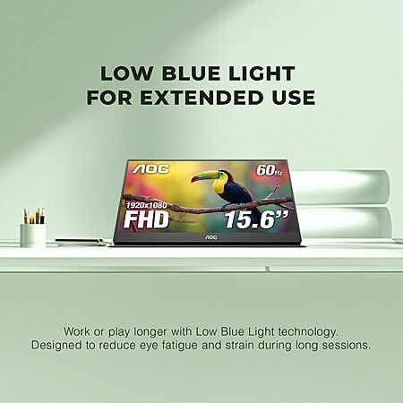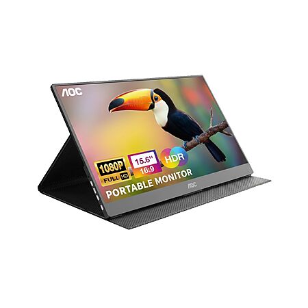 AOC 16T20 Portable Monitor 15.6" FHD 1080p IPS Display, USB-C Portable Laptop Screen, Mini HDMI, Built-in Speakers, Travel Monitor with Smart Cover $49.99