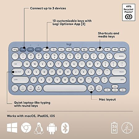Logitech Pebble 2 Combo for Mac, Wireless Keyboard and Mouse, Easy-Switch, for macOS, iPadOS $33.41