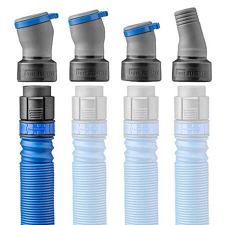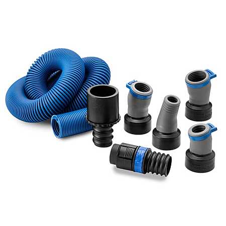 Never before have you experienced an easier system for controlling the dust from handheld power tools. This kit offers all the features of our well-loved FlexiPort system, plus the Click-Connect feature for fast, easy switching of a single hose between multiple tools! Leave the included rubber Click-Connect FlexiPorts on your tools and switch the hose from port to port with a secure ''click.'' The kit includes four FlexiPorts of varying diameters, plus the Click-Connect Hose Adapter, which threads into the included Expandable Hose (now in blue). The blue hose is lighter in weight than the older black hose, for less tendency to pull on your tools. Three of the four FlexiPorts have a clasp that you can ratchet down for a secure connection to the tool. Finally, a vent collar lets you adjust the suction level—perfect for reducing swirl marks when orbital sanding.