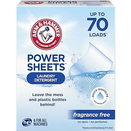 Model: ARM & HAMMER Power Sheets Laundry Detergent, Fragrance Free, No Dyes or Perfumes, Lightweight and Travel-Friendly, 35 Count, Up to 70 Small Loads