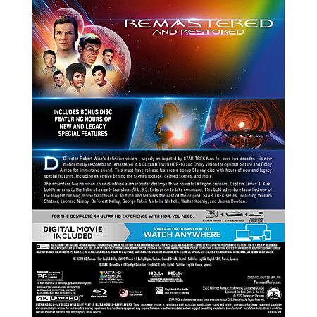 Star Trek: The Motion Picture 4K UHD + Digital Code Physical Disc $12.49 Free Shipping Amazon Prime