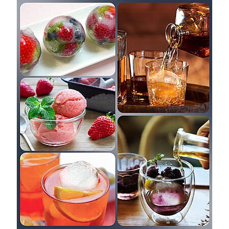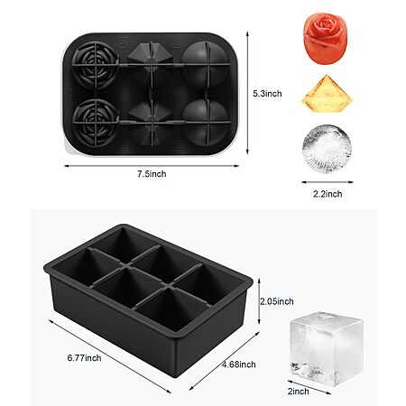 ๐๐๐ซ๐ฌ๐๐ญ๐ข๐ฅ๐ ๐๐๐ ๐๐ฎ๐๐ ๐๐ซ๐๐ฒ ๐๐๐ญ: Get 6 large square ice cubes and create 2 large ice spheres, 2 rose-shaped, and 2 diamond-shaped ice balls in one go with our 3-in-1 ice tray, making 4 different fun shapes each time! Square ice and circle ice balls are classic. Impress your guests with realistic rose and diamond-shaped ice cubes, adding a touch of sophistication to your drinks. Perfect sized ice balls are really nice touch for whiskey, cocktails or other beverages