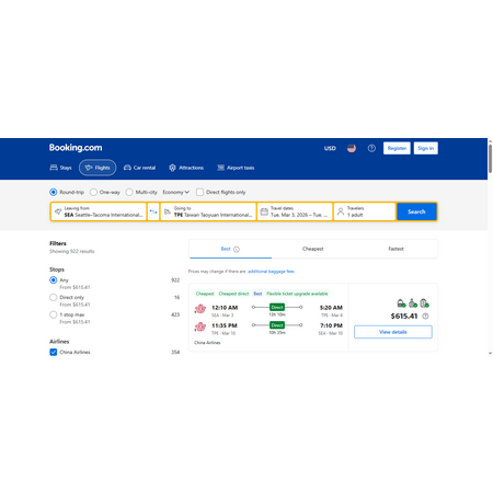 So I tested the code using a random destination, Taipei (TPE) for travel March 3-10, 2026. The round trip nonstop airfare on China Airlines with the code is $629 while using the same flight/dates on