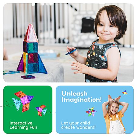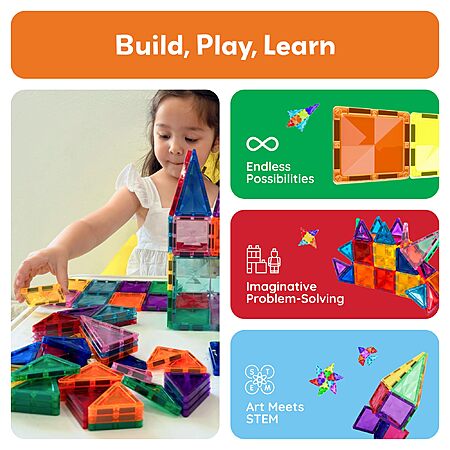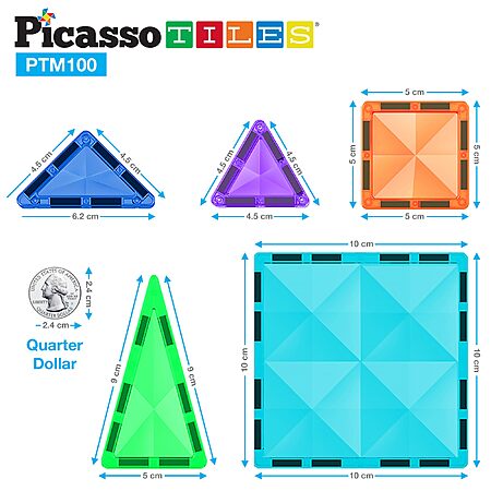 PicassoTiles 100pc Magnetic Tile Mini Diamond Set Travel Size $21